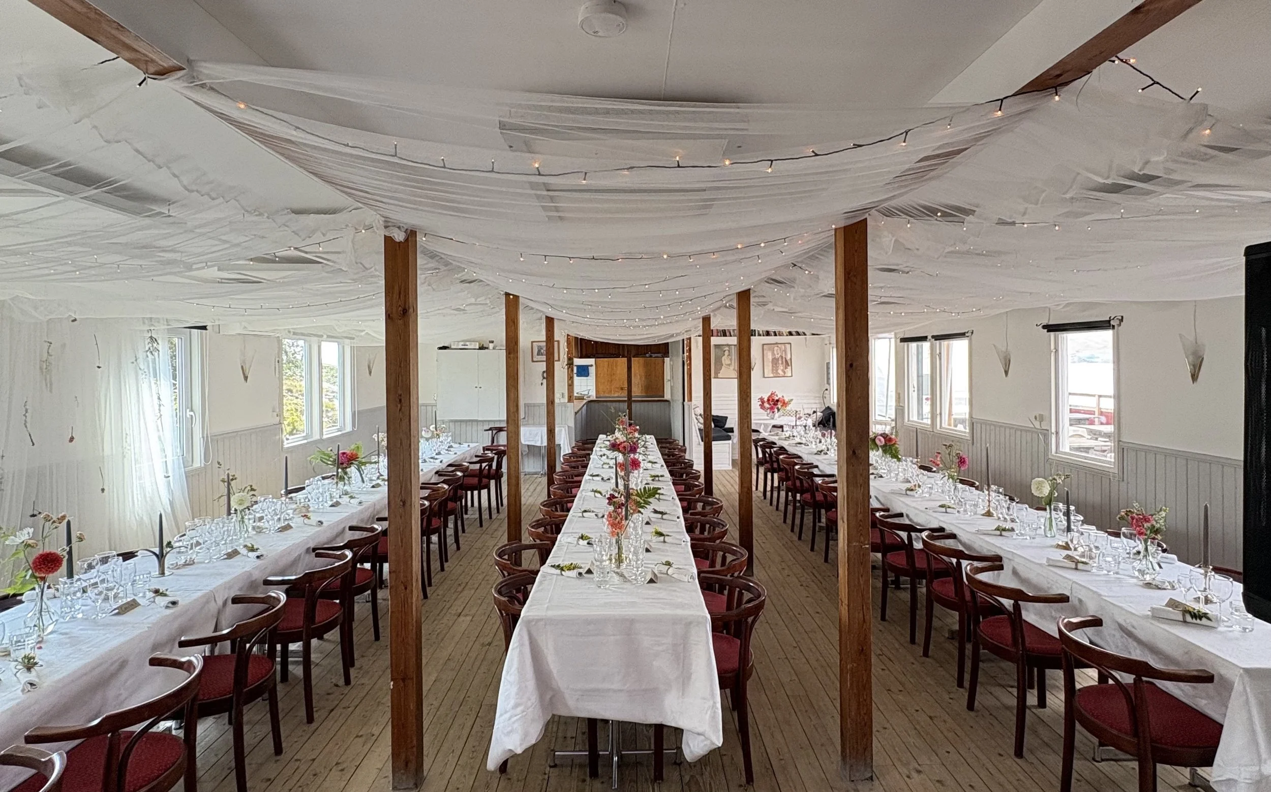 När det gäller kalas och bröllop i för- och eftersäsong är dukningen i matsalen begränsad till ca 80 personer.
